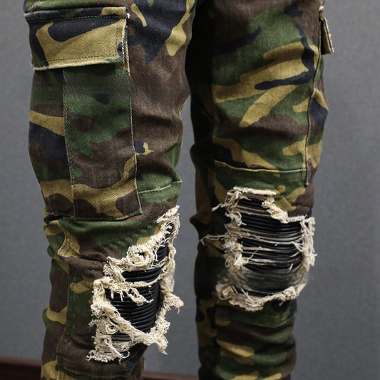 Fashion Camouflage Men's Broken Hole Jeans