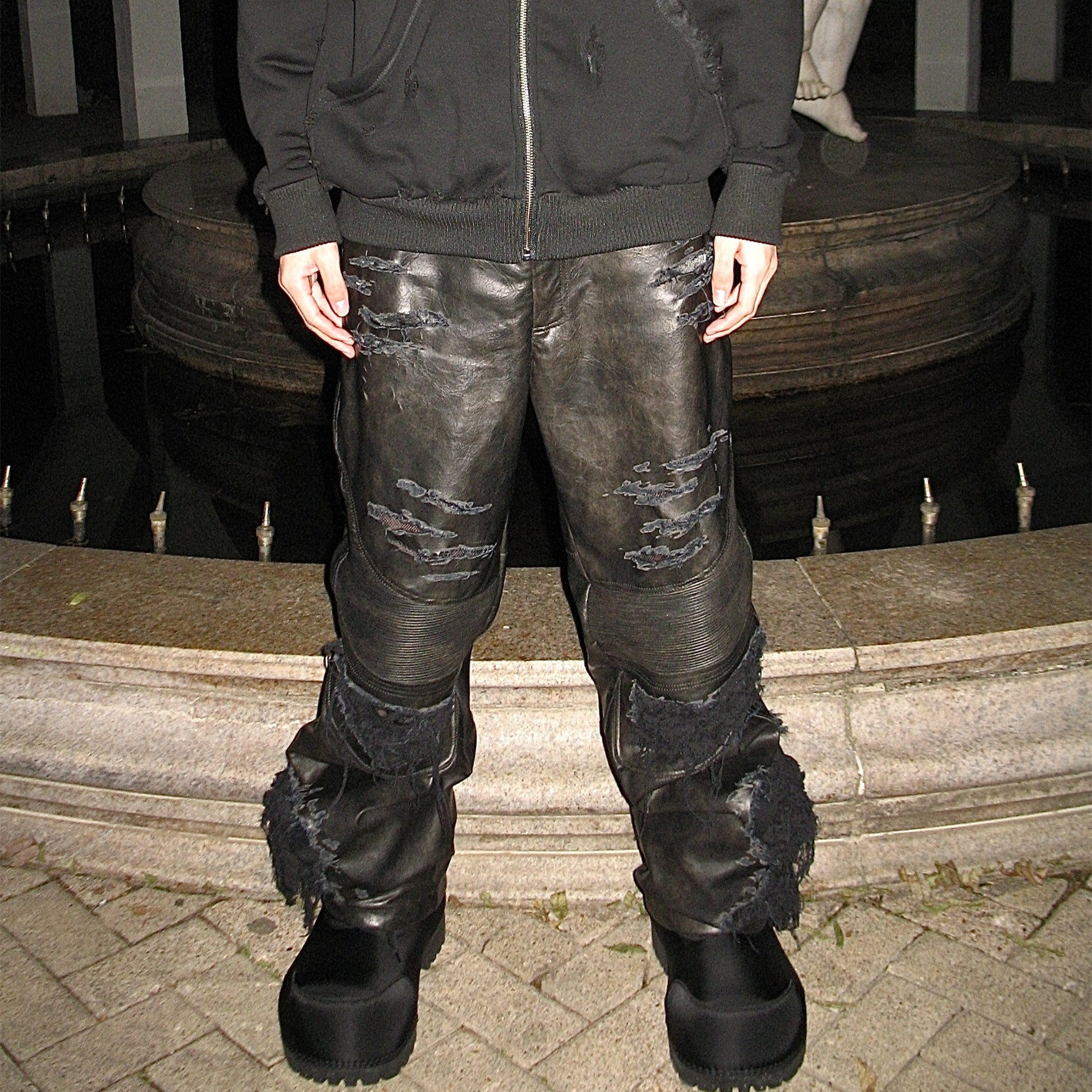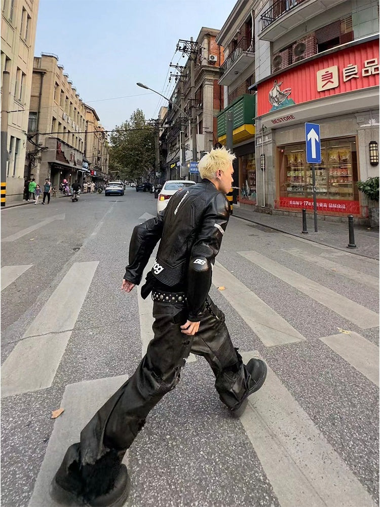 Composite Fading Old Locomotive Damage Leather Motorcycle Pants